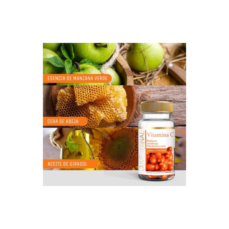 JUVETERNAL Do Cpsulas Faciales Vitamina E Cpsulas Faciales Vitamina C, 90 cpsulas cu, Antioxidante, Luminosidad y Proteccin para tu Piel