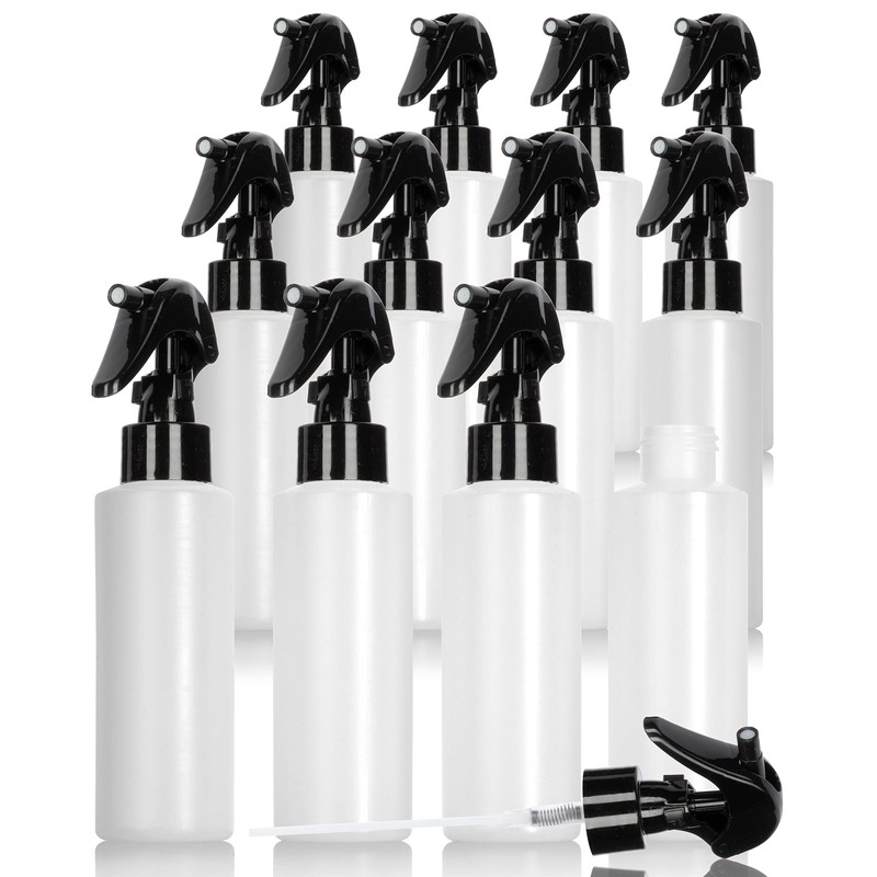 JUVITUS 4 oz / 120 ml Clear Natural Refillable Plastic Cylinder Squeeze Bottle with Black Trigger Sprayer (12 PACK)
