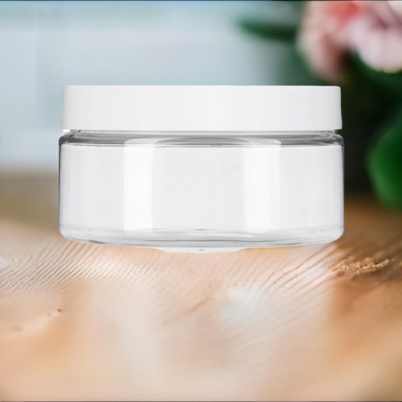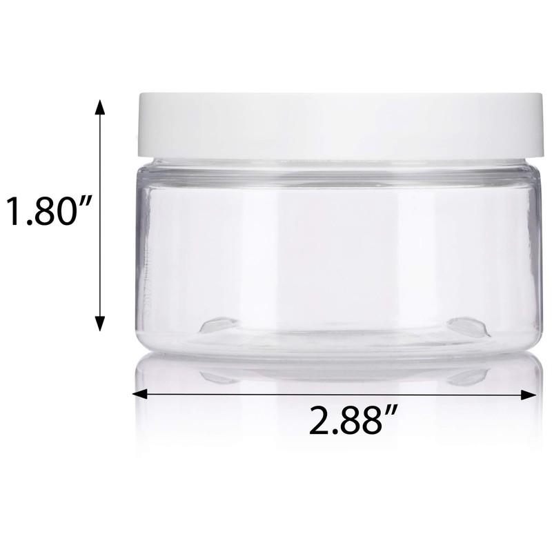 JUVITUS 4 oz Clear PET Plastic Refillable Low Profile Jar with White Lid (Pack of 12)