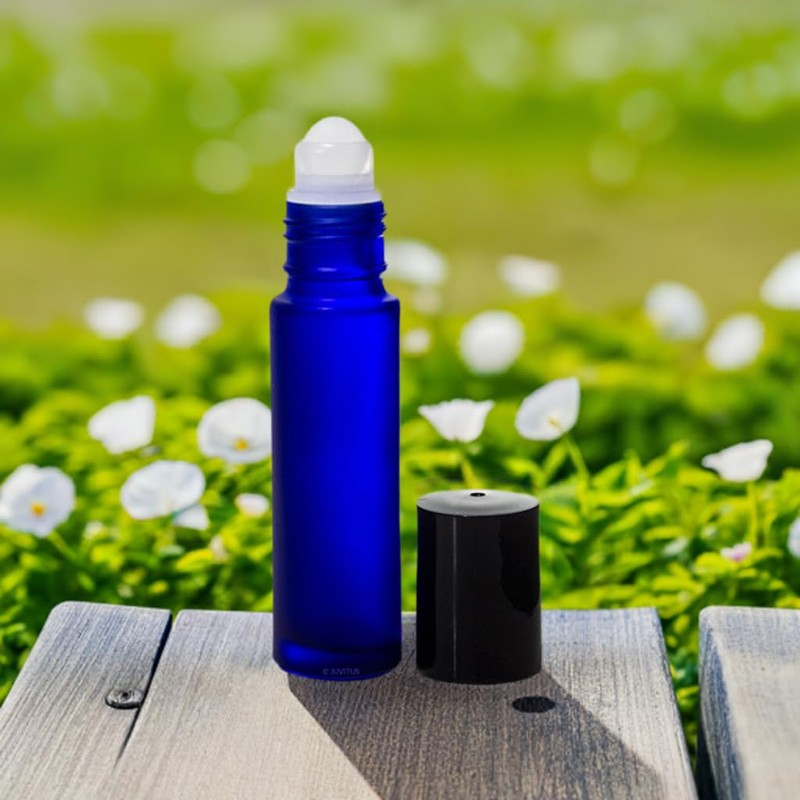 JUVITUS 4 Pack 10ml Cobalt Blue Glass Roll-On Applicator and Black Cap