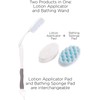 - TWO PRODUCTS IN ONE -- LOTION APPLICATOR and BATHING WAND: Comes with interchangeable, replaceable Bathing Sponge pad and Lotion Applicator pad. Replacement pads available. No more throwing out the whole product when pad wears out.