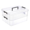 JUXYES 2-Tiers Stack Carry Storage Box With Handle, Transparent Stackable Storage Bin With Handle Lid Latching Storage Container for School & Office Supplies