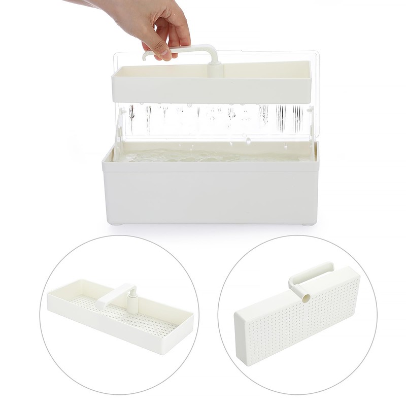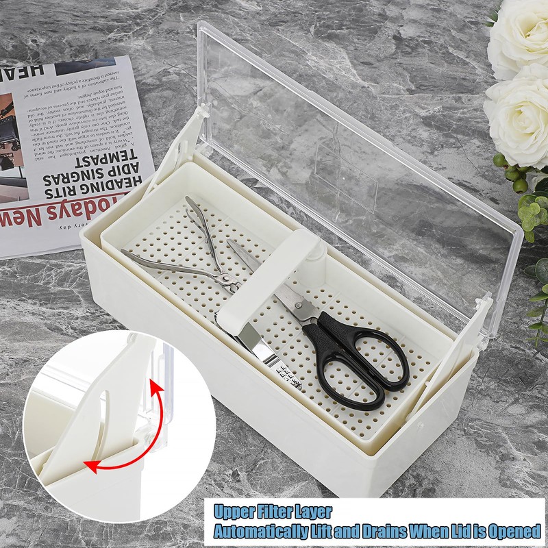 - Our plastic Nail Art Tools Sterilizing Tray inside has a removable handled drain tray. Soaking tray automatically lift and drains when cover is opened.