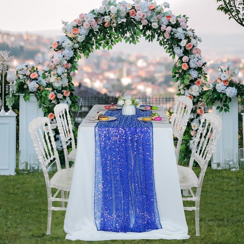 Juya Delight Blue Table Runner 25"x120" Glitter Sequin Iridescent Table Runner for Birthday Party Decorations