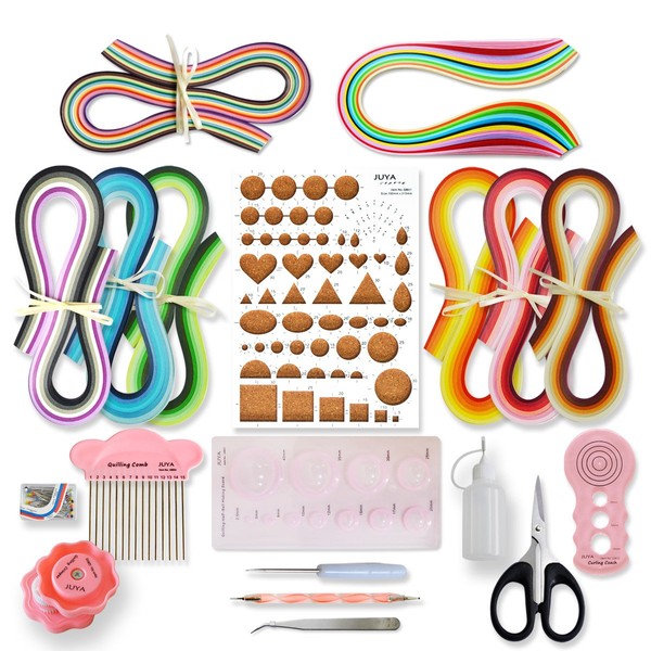 Juya Paper Quilling Kit with Pink Tools 960 Strips Board Mould Crimper Coach Comb (Paper Width 5mm)