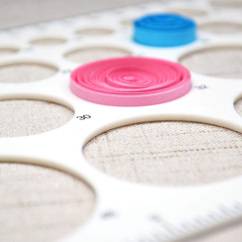 Quilling round board, size: 210 x 140 x 2 mm (8.27 x 5.51 x 0.08 in.), have 31 different size circles, also have 14 template shapes for embossing.