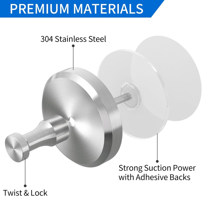 - Premium Material. The suction cup hook shell with smooth surface is made of high quality stainless steel, while the suction cup is made of PVC, waterproof and rustproof.