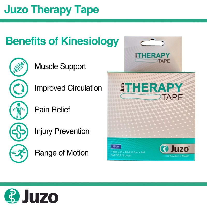 Juzo Kinesiology Tape, 5M Roll, Single | Body Tape for Adjunct Therapy, Pain Management, Muscle Support, Joint Support, Swelling Reduction and Enhanced Athletic Performance | Blue