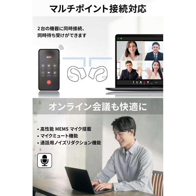 - Multi-point function: Supports multi-point connection to two devices such as smartphones and PCs