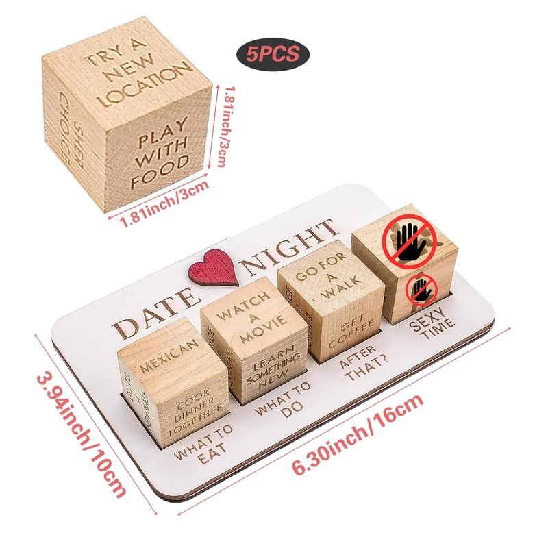 -Enhance your bonding experience and unlock new areas of closeness with our wooden dice game. Elevate your date nights and make them memorable and extra special. Whether you're planning a cozy night in or an adventurous trip, just roll the dice and let fate decide your date thoughts.