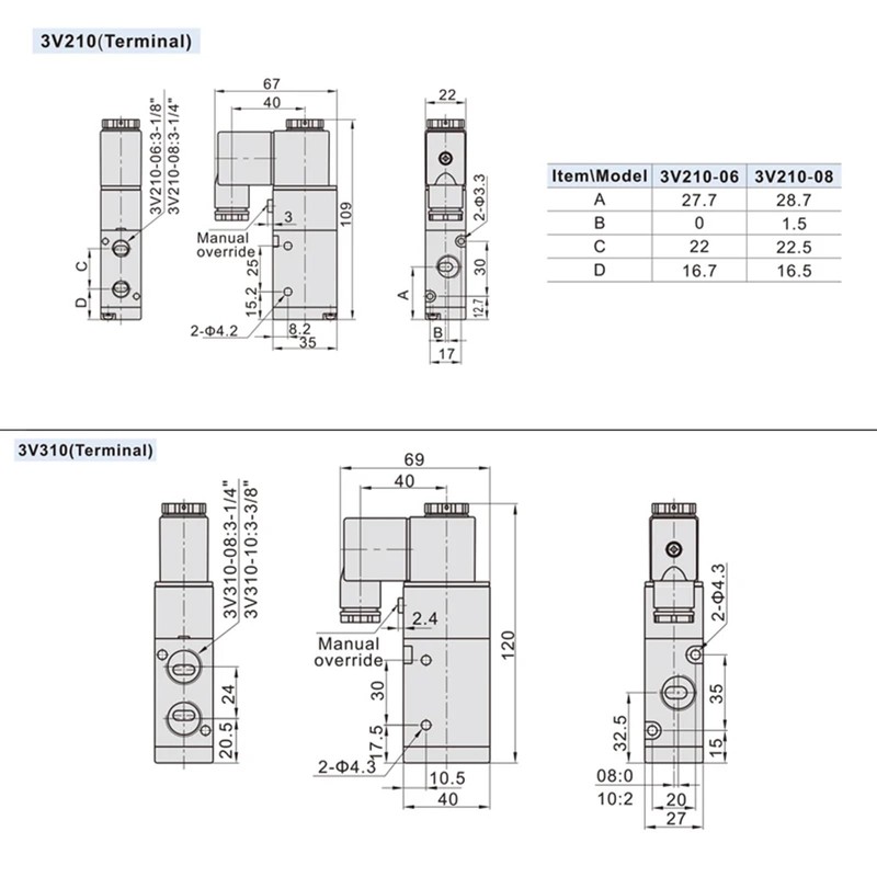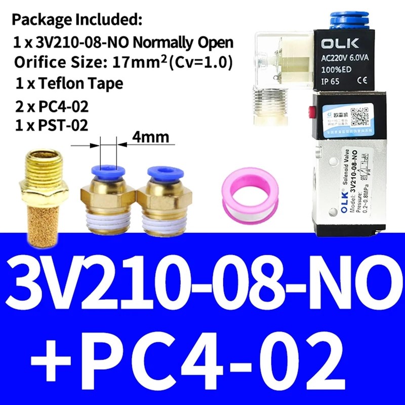 JVOZBZMWZ 1 pcs 3V210-08 3V210-08-NO 3V310-10-NC 3V310-10-NO 3 Way Normally Open Close Air Valves Pneumatic Solenoid Valve(3V210-08-NC 4mm,OneColor)