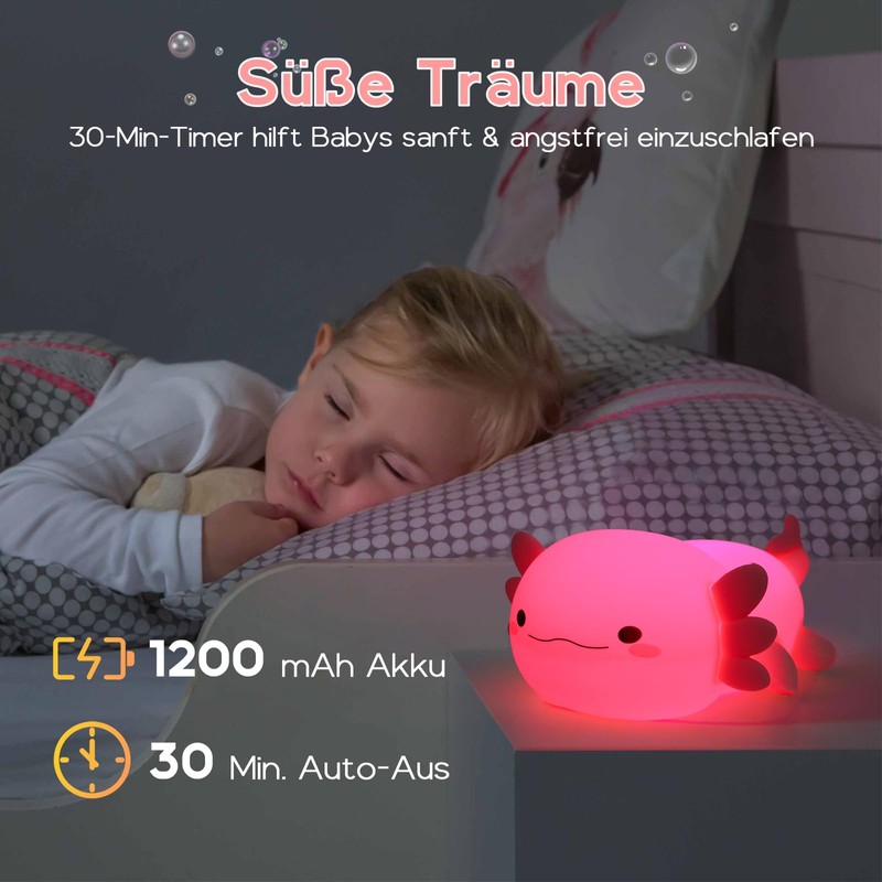 JVURICE Silikon Nachtlicht, Nachtlicht Kinder Axolotl Lampe Dimmbar Cute Tier Touch Aufladbare Kinderlicht Schlafzimmer Led Night Light Dekor Kinder Geschenke Für Mädchen Junge Weihnachtsgeschenke