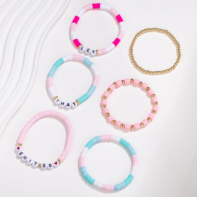 - Comes with 6pcs stackable bracelets in different styles.The colorful preppy bracelets mixed colors of randomly layered bracelets are a collection of many fashion styles.Each of bracelets is unique and attractive stuff.