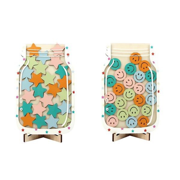 Jwinkumy Magnetic Reward Jar - Children's Reward System Star and Smiley Reward Jar Classroom Reward Chart Good Habit Cultivation Suitable for Classroom and Home Training (2 Pcs)