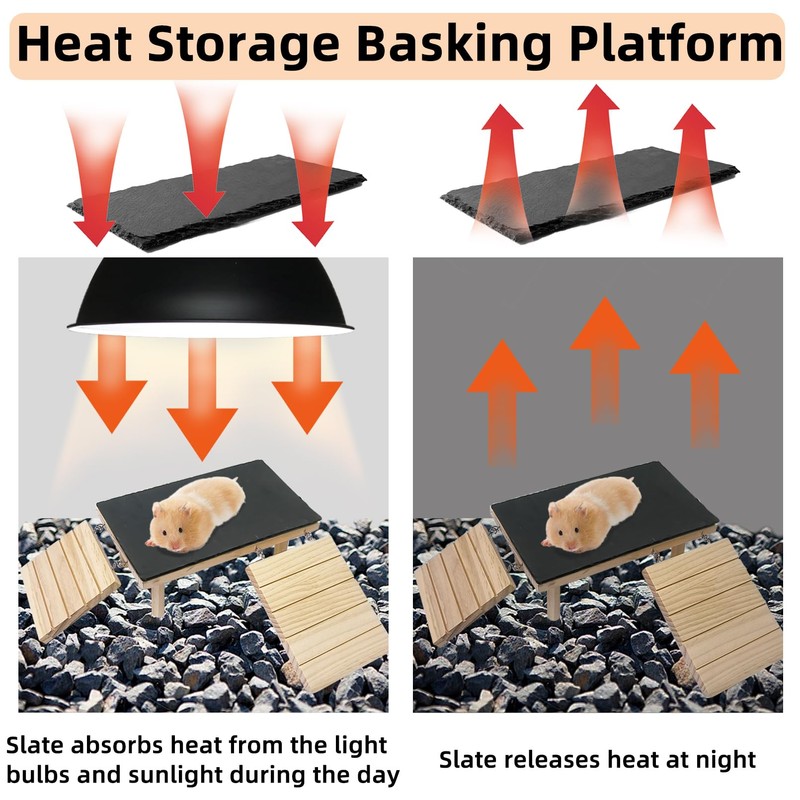 - 【With Heat Storage Slate Stone】We have equipped you with a heat storage slab to absorb the sun bulb and sun heat during the day and release the heat at night to provide warmth for your hamster.