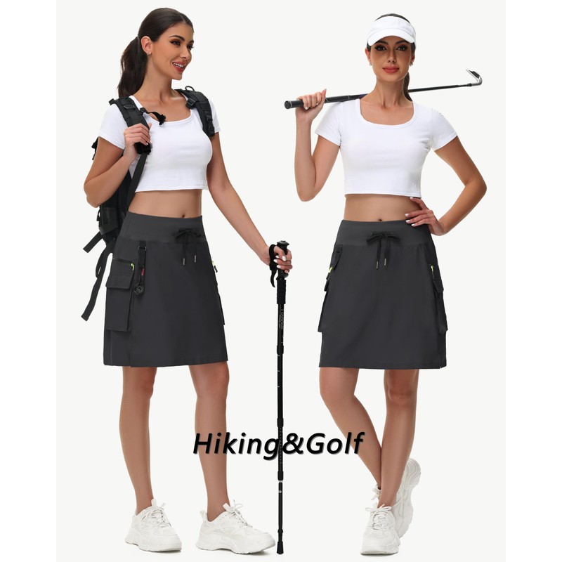 women skorts skirts hiking knee length cargo zipper pocket dressy golf casual quick dry tummy control khaki black shorts size drawstring summer long athletic bike length workout active tennis high waisted sport travel work inch woven upf fishing