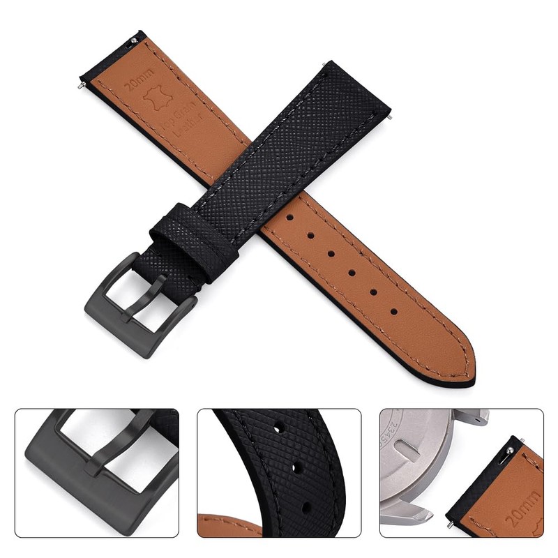 - Comfortable and Durable:The strap is very soft, there is no need to worry about scratching the skin, it can be highly fitted to your wrist, very comfortable to wear; The rigorous process makes it extremely durable, the surface is not easy to be worn, the shape is not easy to change, and it can be worn for a long time and keep fresh. The strap has a certain arc, tapered shape. The width of the watch head to the buckle is gradually reduced by 3-4 mm, and the leather strap is tightly stitched