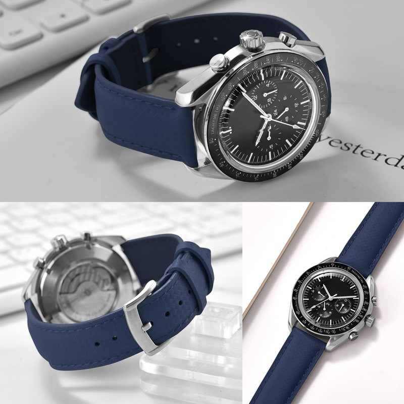 - Craftsmanship:Our watch strap is feature a unique three - part construction. The top layer is made from high - quality fluoroelastomer embossed with an elegant checkered pattern, offering exceptional durability, flexibility, and resistance to wear, tear, and fading. The middle layer consists of a 2 - 3mm cushioned lining that provides a plush and comfortable fit against your skin, ensuring all - day comfort. The back is crafted from waterproof brown leather, adding a touch of sophistication and a secure grip on your wrist