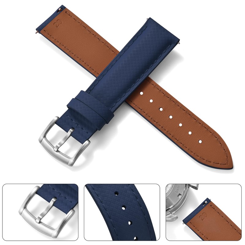 JWNSPA Universal 18/19/20/22mm Quick Release Leather FKM Rubber Watch Band,3-Layer Comfort Design Replacement Strap for Men Women (Navy Blue, 20mm)