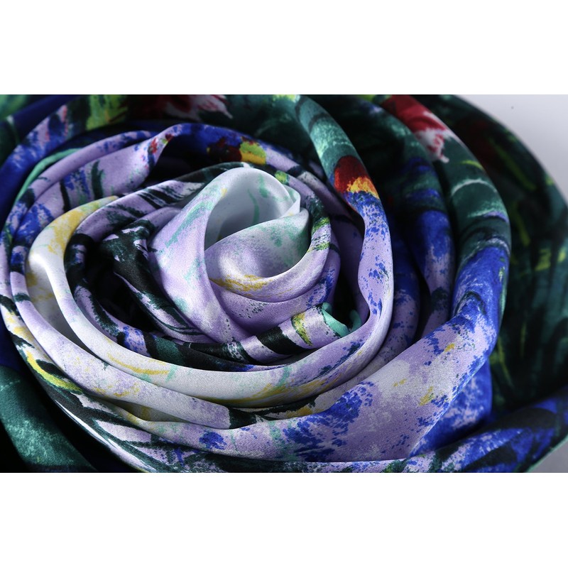 JWSilk Long Charmeuse Silk Scarf Classic Art (Waterlilies by Monet)