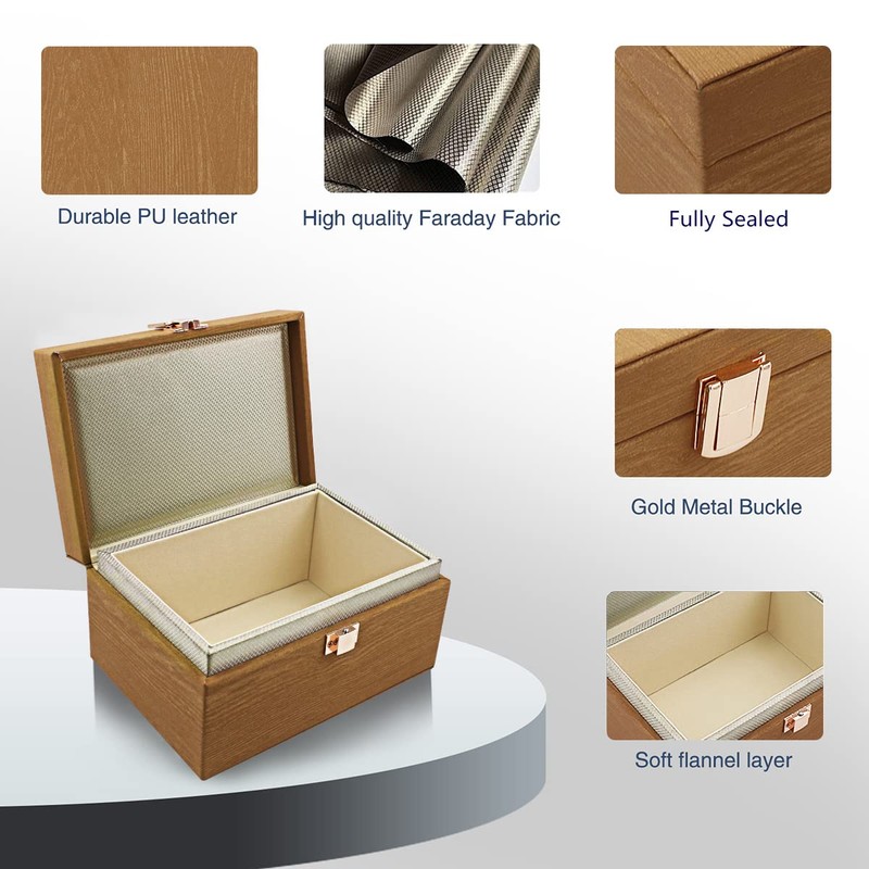 JXE JXO Faraday Box, 5.5x4.1x2.7 inches, RFID Signal Blocking Storage Box, Car Key Fob Protector, Modern Style, Imitation Wood, 1.3 lbs