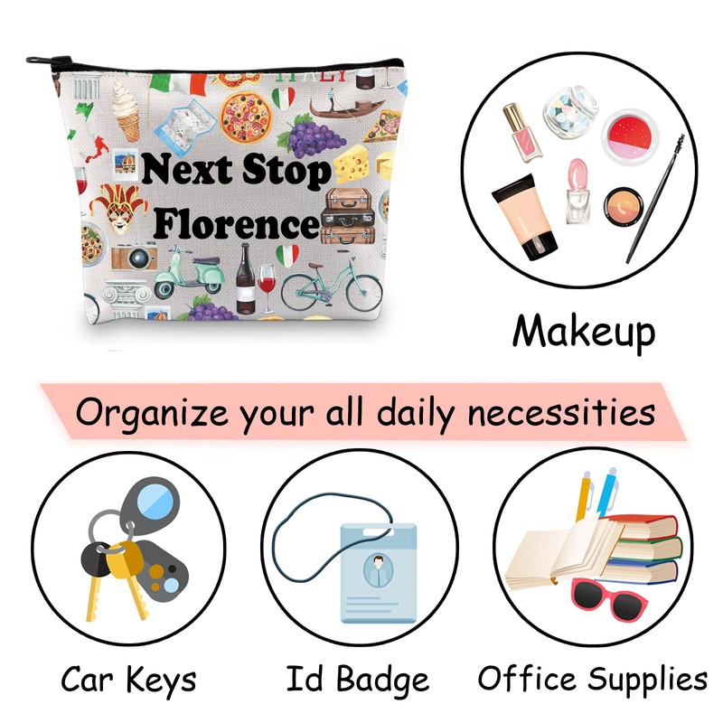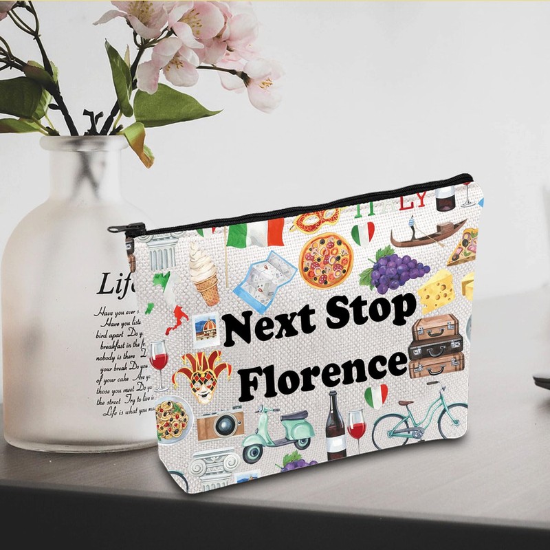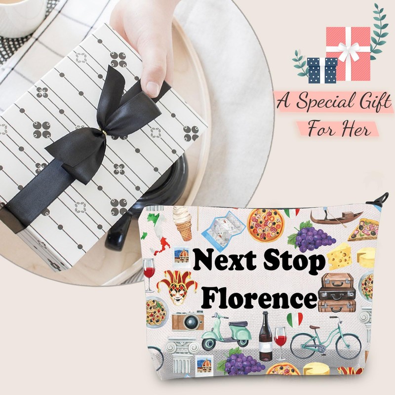 JXGZSO Florence Trip Gift Next Stop Florence Makeup Bag Italy Trip Gift Italia Travel Cosmetic Bag Florence City Lover Gift, Next Stop Florence