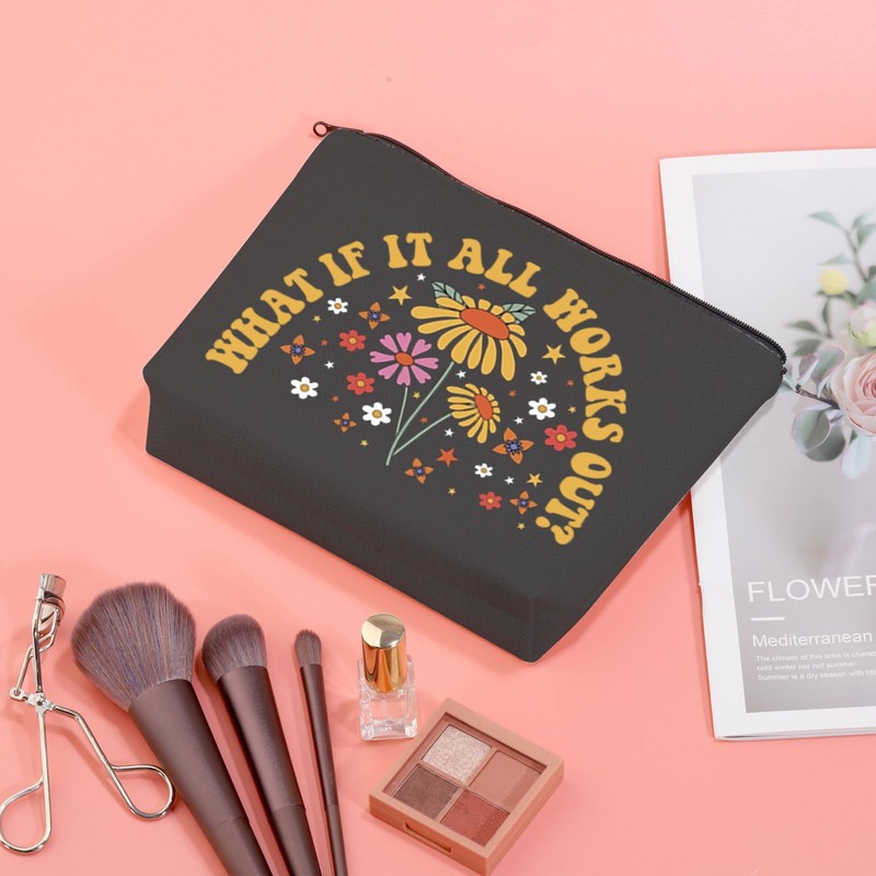 JXGZSO Motivation Quote What If It All Works Out Makeup Bag Mental Health Awareness Gift Mental Health Inspiration Gift (All Works Out Bag CA)