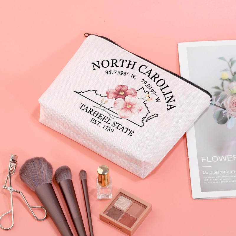 JXGZSO North Carolina Map Cosmetic Bag North Carolina Travel Pouch Bag Dogwood Flower Lovers Gift (TARHEEL STATE Bag)