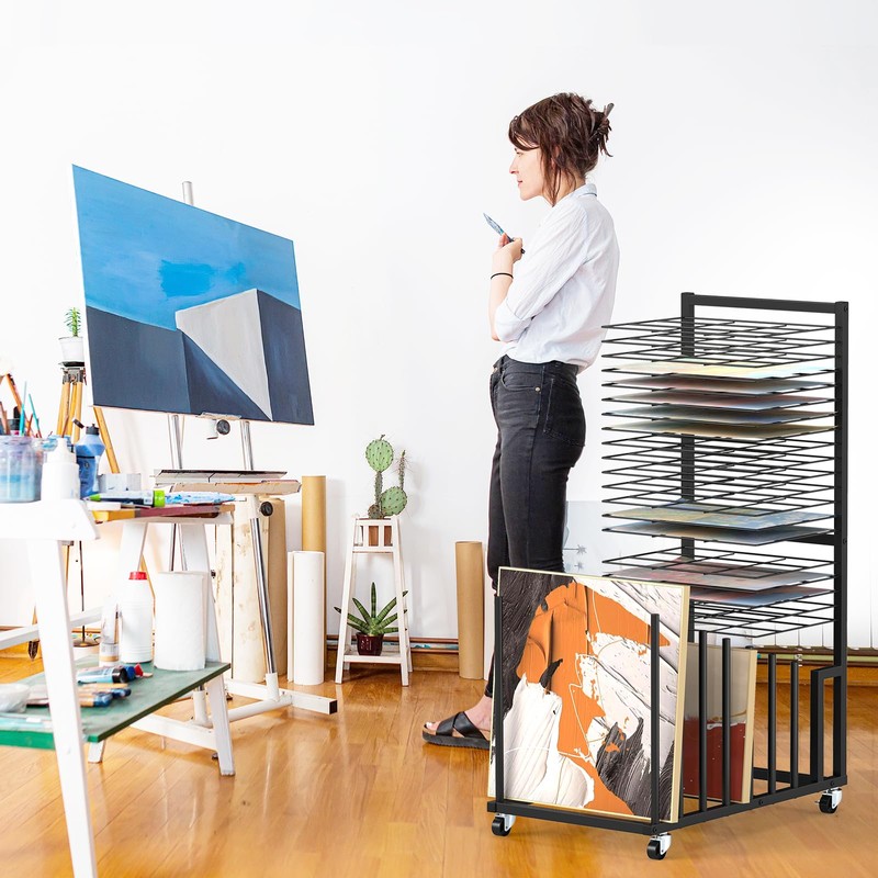 - Sturdy Construction: This 2 in 1 painting storage drying rack is made of iron metal. Black timeless appearance design, suitable for a variety of decorative styles of the room, can easily fit into your home and add a touch of unique color to your home
