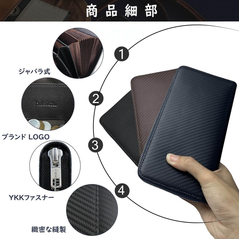 jxleichi Men's Long Wallet, Carbon Leather, Genuine Leather, Large Capacity, Holds 25 Cards, Round Zipper, Card Case, YKK Skimming Prevention, Magnetic, Bill Purse, Coin Purse, Multi-functional,
