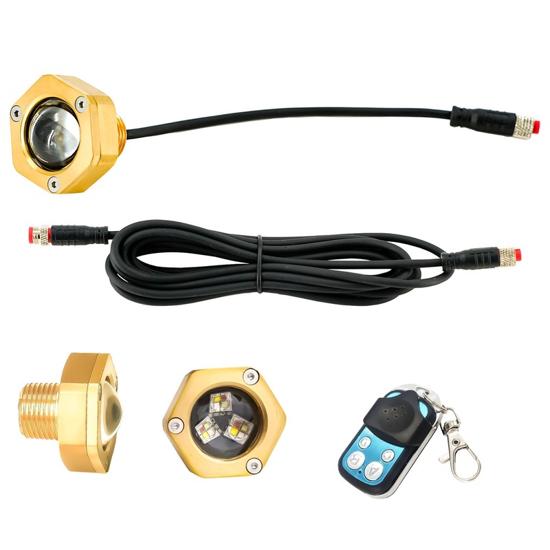 JXOFROAD RGBW Standard 1/2" NPT Boat Drain Plug Lights with a 1.5m Extension Cord, IP68 Underwater LED Trailer Lights with APP& RF Control for Boat Pool Yacht Fishing, with The Smart Cooling Systen