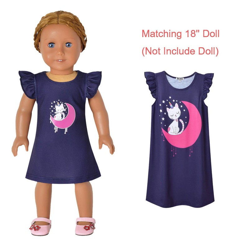 - Camisones a juego para niñas y muñecas, se adaptan a casi 18 pulgadas muñecas y muñecas de American Girl, manga aleteo, ajuste holgado, vestido de pijama hasta la rodilla.