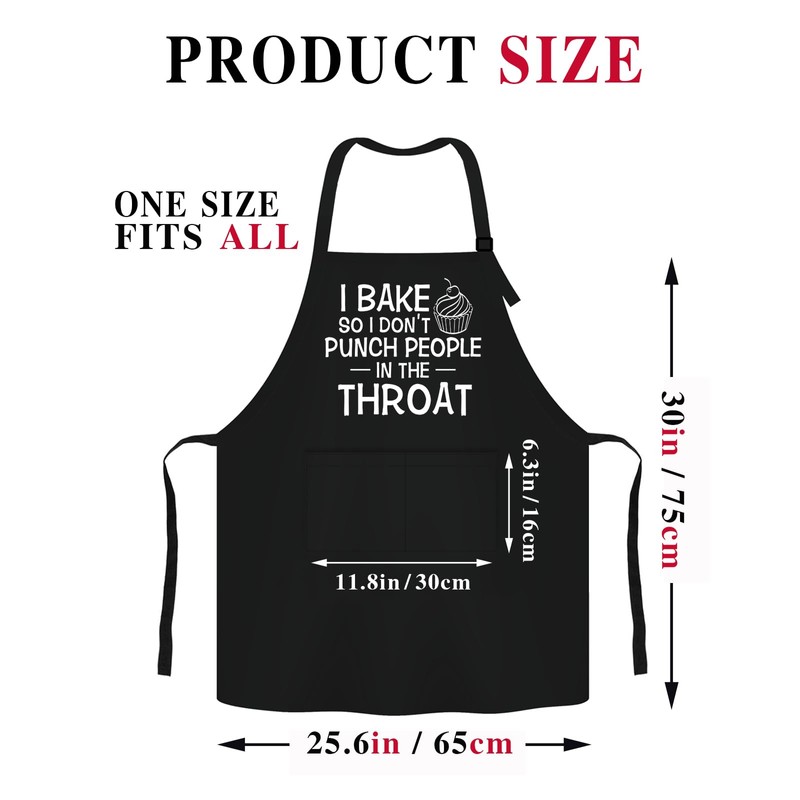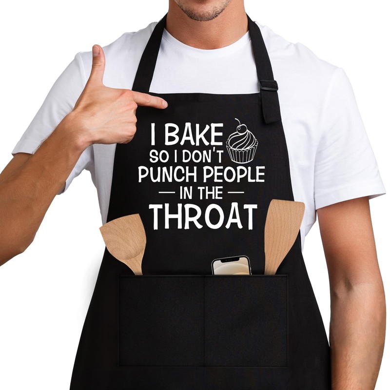 Jxubeuro I Bake So I Don't Punch People in The Throat,Funny Chef Apron,Funny Apron cooking for Men & Women with 2 Tool Pockets,Adjustable Straps,Cooking Baking Apron,Bake Lover Gift