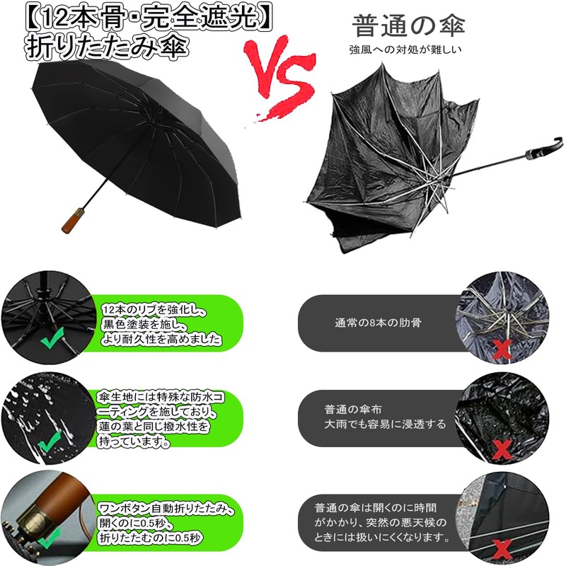 - Aviation aluminum alloy frame + reinforced ribs with 5000 bend lifespan, durable enough to withstand typhoon high winds The inner water repellent coating ensures no water residue inside the umbrella, making it safe to use in the car