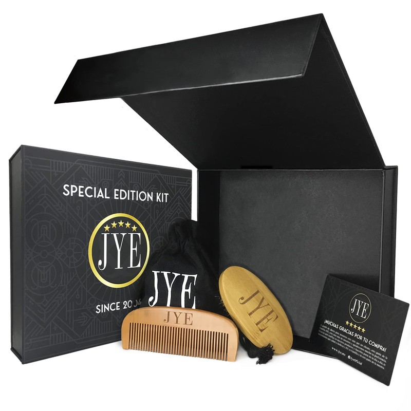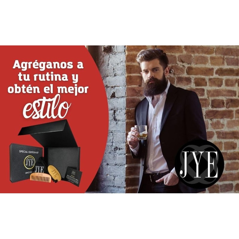 JYE Kit Cuidado de Barba y Bigote: Aceite de Hidratación, Shampoo de Bergamota, Piene y Cepillo Edición Especial