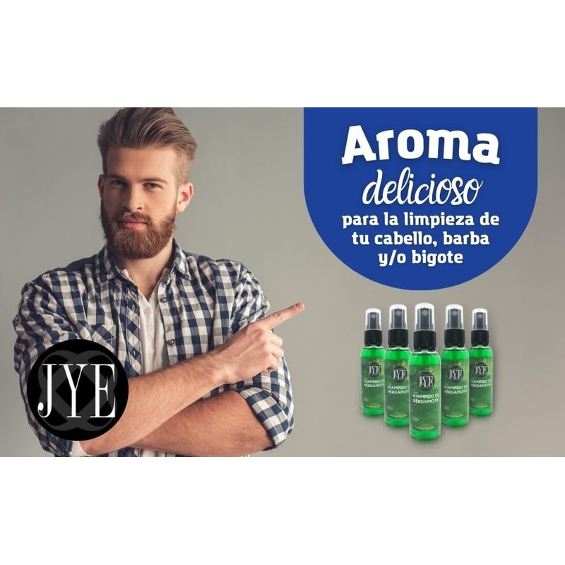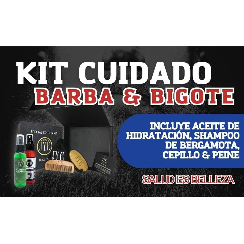 - Kit Cuidado de Barba y Bigote Incluye Aceite de Hidratación, Shampoo de Bergamota, Piene y Cepillo de Lujo JYE