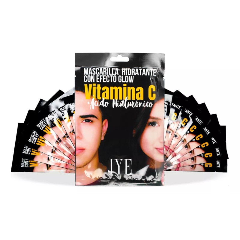 - 10 Mascarillas Jye Efecto Glow con Vitamina C y ácido hialuronico de 35 gramos cada una.