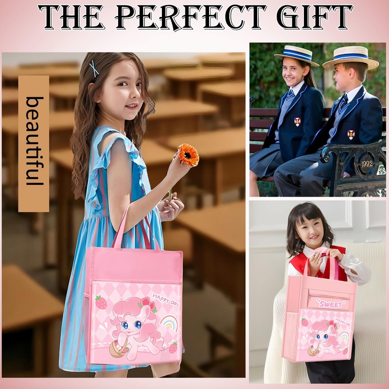 JYJLLM book pouch,Document Organizer Bag Personalised School Book Bag Reading Homework Book Bag Book Pouch with Handle File Tote Holder Bag File Pouch Bag Student Book Pouch Roomy (Pink)