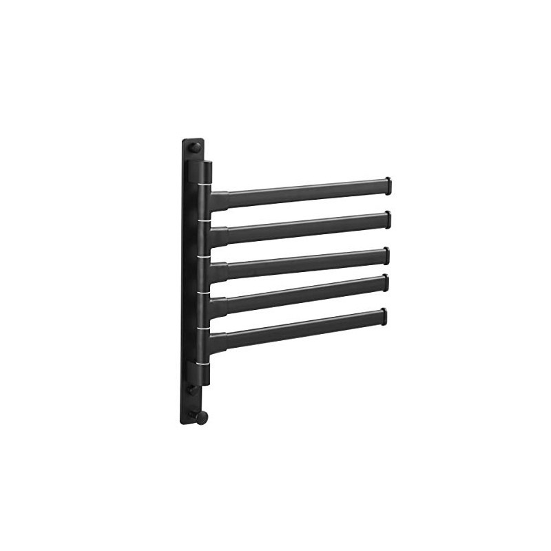 JYL HOME Swivel Hand Towel Bar Bathroom Swing Hanger Towel Rack Holder Matte Black Finish, Wall Mounted, 5-Arm