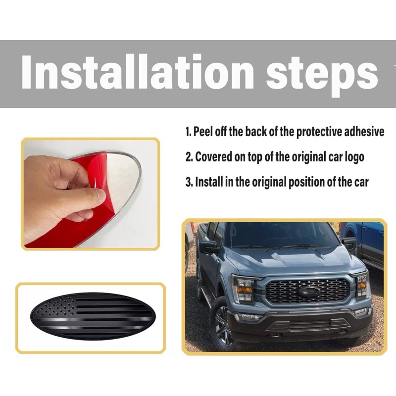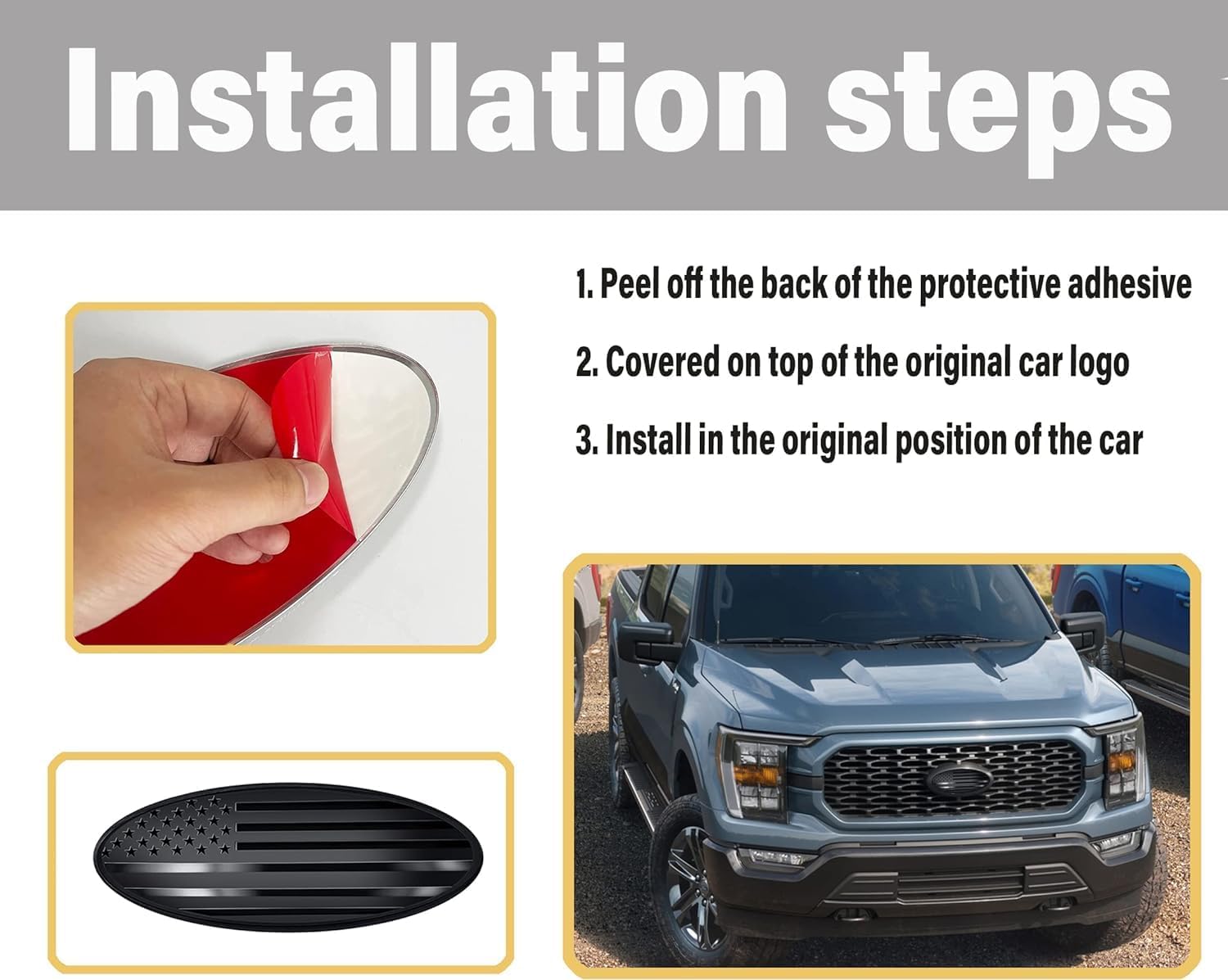 9.5inch For 2015-2021 Ford F-150 FRONT GRILLE Tailgate US Flag Oval Emblem Badge
