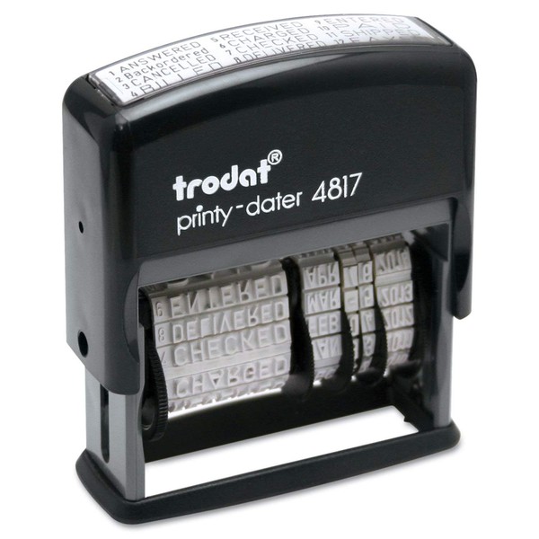 - Date Stamp with 12 Changeable Messages,Message are: ANSWERED, Backordered, CANCELLED, BILLED, RECEIVED E-MAILED, CHECKED, DELIVERED, ENTERED, PAID, SHIPPED, FAXED