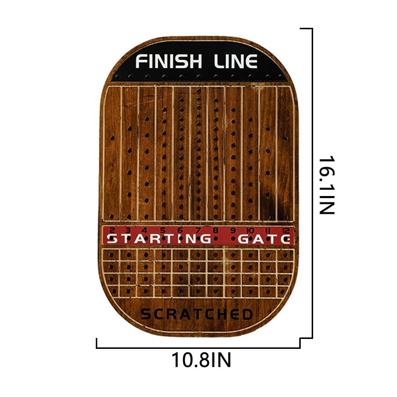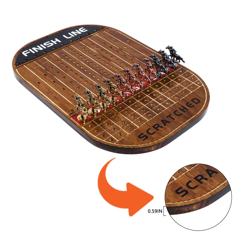 - METAL HORSE, NOT PLASTIC: The lifelike horse racing is achieved with pure metal instead of cheap and easily damaged plastic . Crafted from high-quality solid wood and measuring 0.8 inches thick, this game board is not only beautiful but also durable. The exterior of the game board features a special waterproof coating that prevents deformation or corrosion. Smooth corners are safer to prevent collisions and injuries!