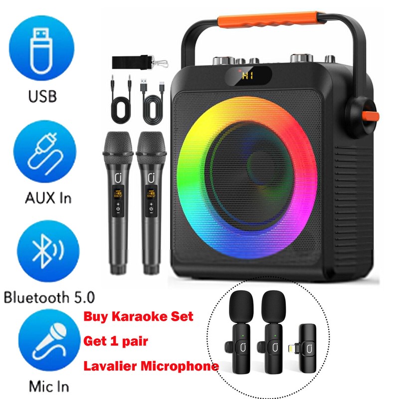 JYX Portable Wireless Speaker Karaoke Machine with 2 Microphones Party Speaker