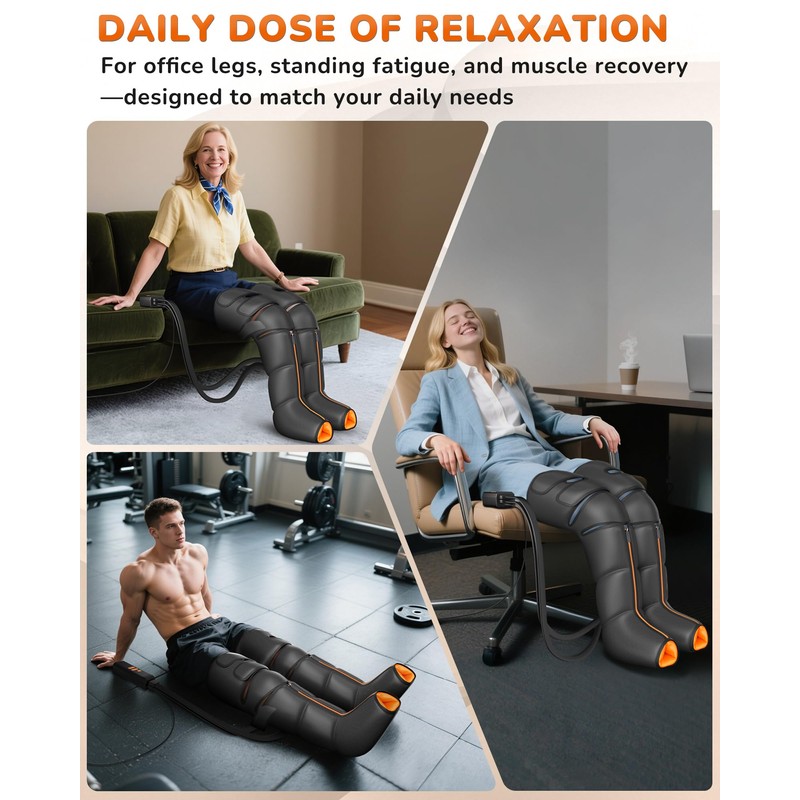 - 【Made for Everyday Legs – At Home, at Work, or After Walking All Day】 This leg massager is built for everyday comfort—great for office workers, teachers, warehouse staff, drivers, older adults, or anyone who sits or stands for hours. Fitness users will also value it for post-workout recovery. Use it while watching TV, relaxing after work, or before bed. Unlike bulky medical-grade devices, it’s lightweight, easy to use, and perfect for daily relief—without the hassle.
