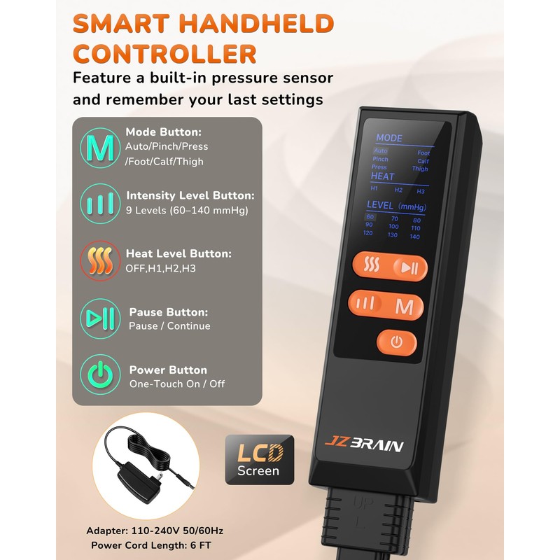JZBRAIN Leg Massager with Heat and Compression : Recovery Boots with 6 Modes, 9 Intensity and Adjustable Heat – Sequential Compression Device for Circulation and Pain Relief,Gifts for Him Her