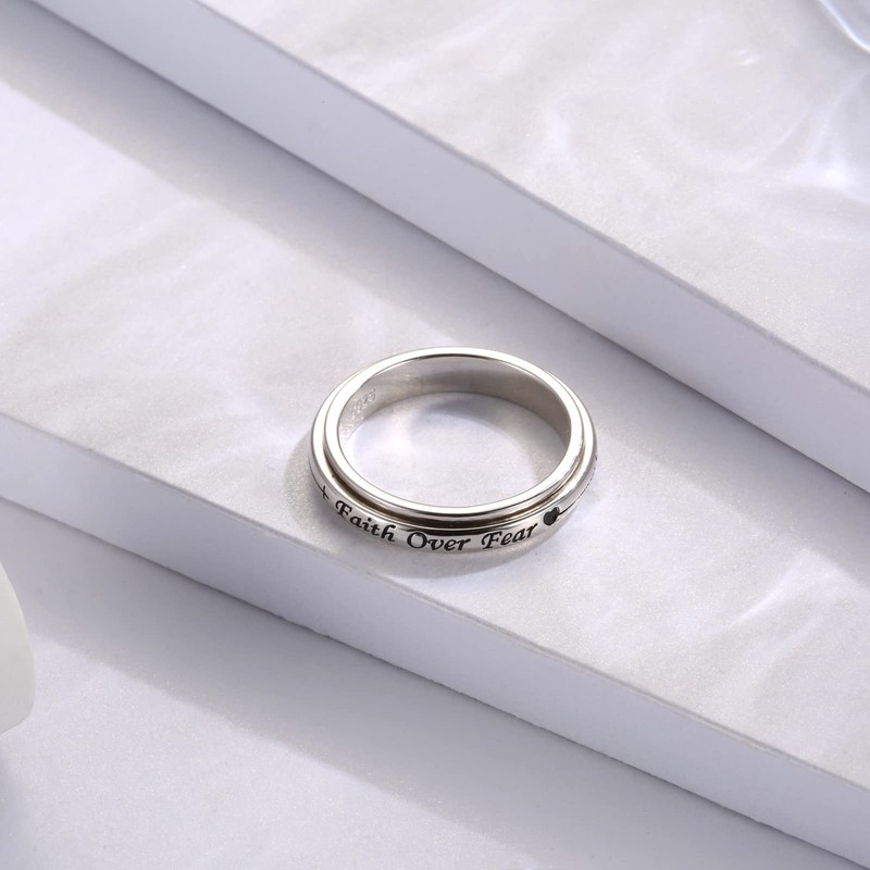 JZCOLOR 925 Sterling Silver Spinner Fidget Ring for Women: Musical Note Viking Rune Heartbeat Anxiety Stress Relieving Rotatable Ring Faith Hope Love Spinner Ring Jewelry Gift (Faith, 10)