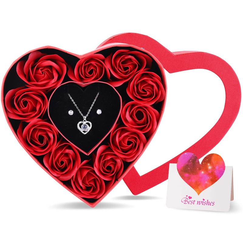 - 💖 I LOVE YOU 100 Necklace: I LOVE YOU necklace 100 Languages in Hidden inside Bottom of the jewelry box, "which means there are 100 love you ways". The pendant and chain of mom necklace are made of brass with rose gold plating,which are hypoallergenic and have oxidation resistance. The love necklace designed with an 18-inch chain, 2-inch extender, and a adjustable spring ring clasp. They don’t contain lead, nickel, or allergens.