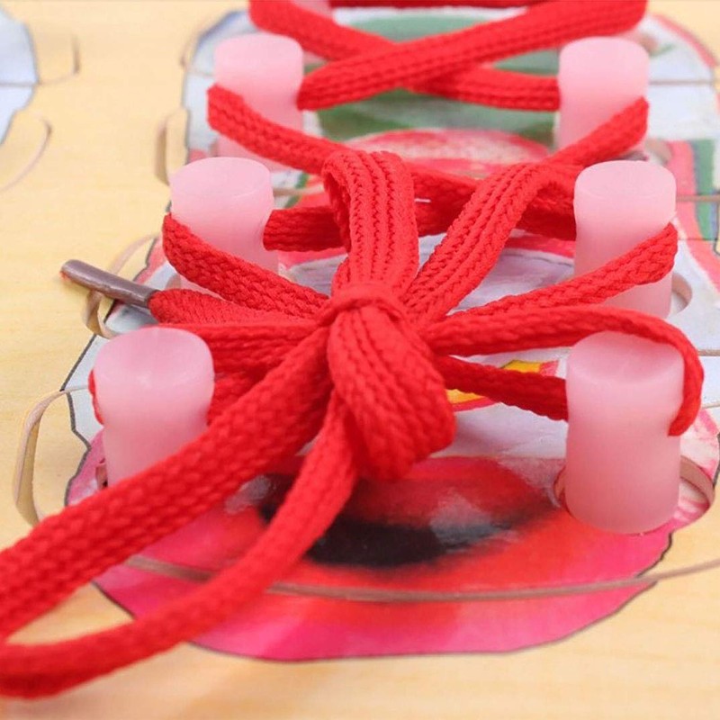 Jzhen Shoelaces Toy Wooden Shoe Puzzle Threading Shoe Threading Game for Children Boys Girls