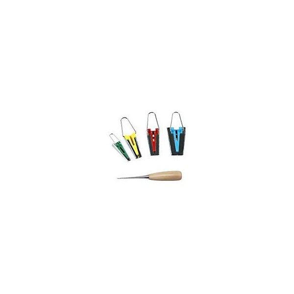 JZK Fabric bias binding tape maker tool set of 4 sizes 25 mm (1"), 18 mm (0.7"), 12 mm (0.47"), 6mm (0.2"), with an awl, sewing quilting tool gadget accessory