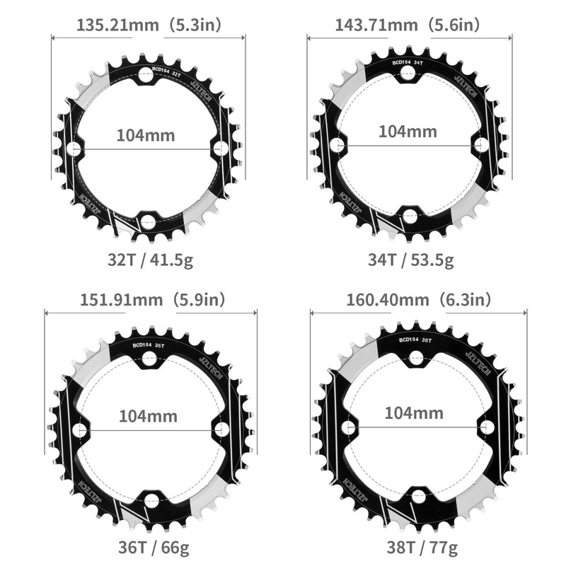 - ✔DURABLE & LIGHTWEIGHT- Machined from high-quality aluminum alloy, this 104mm BCD narrow wide chainring is lightweight yet extremely sturdy to withstand heavy use on trails or commutes. Bolt Circle Diameter(BCD) is 104mm, please carefully confirm the specification of crank 104 BCD before purchasing.